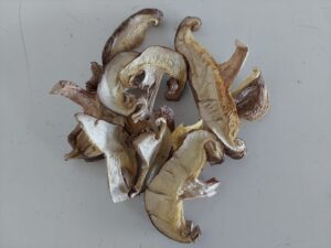 Hidratar 12h en agua o 2h en agua caliente. Añadir 1 L de agua cada 100g de setas. Picar y cocinar al gusto. – Utilizar en sopas, guisos o salteados para agregar un sabor umami intenso. – Triturar y mezclar con otros ingredientes para hacer condimentos o salsas.